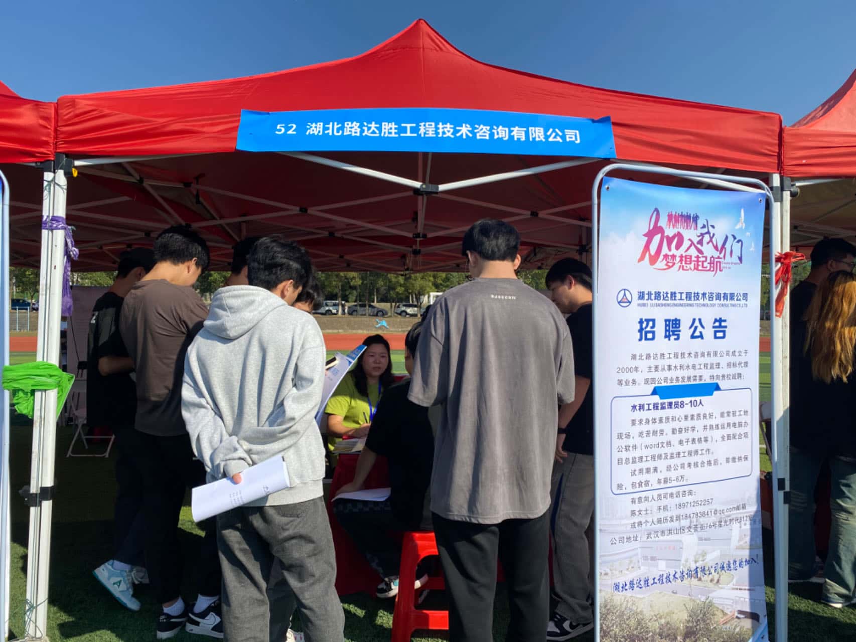此次招聘会共吸引湖北省内省外121家用人单位,涵盖水利工程、建筑工程、电力电子工程等专业,提供了7000多个就业岗位供学生选择。路达胜公司综合部陈主任知道信息后积极联系主办单位申请到一个招聘展位,11月2日带队亲临现场招聘并宣传公司经营业务,企业文化,职业规划等,吸引了众多同学前来聆听并投递了简历。