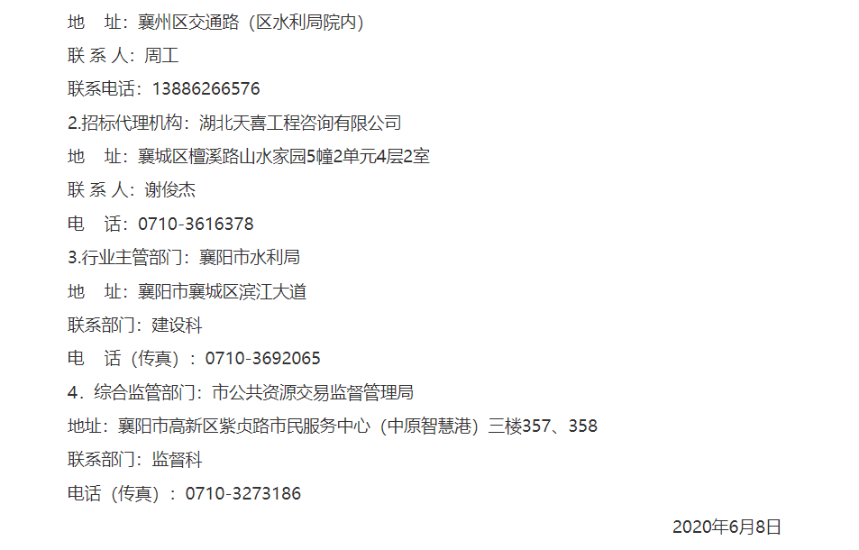 1.招 标 人:襄州区滚河下段治理工程项目办公室