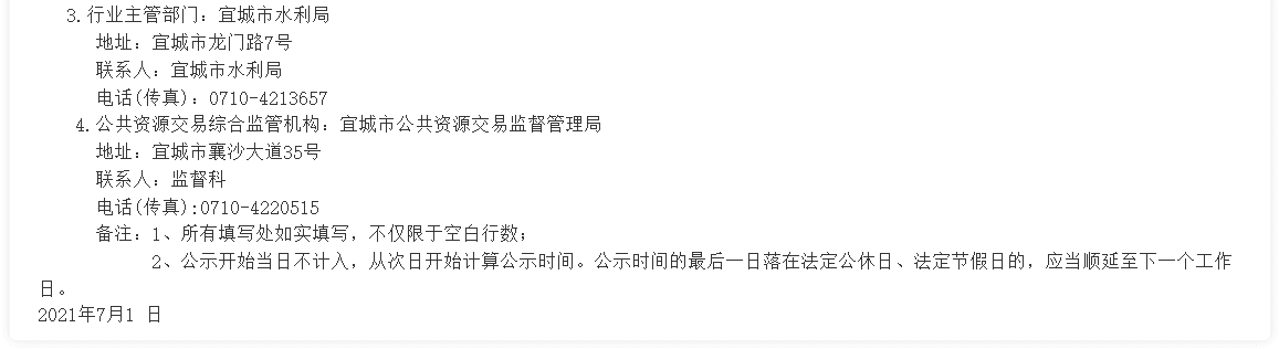 4.公共资源交易综合监管机构:宜城市公共资源交易监督管理局