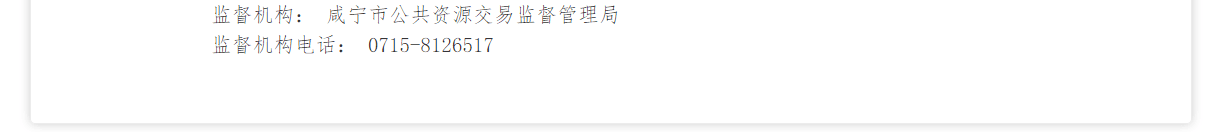 监督机构: 咸宁市公共资源交易监督管理局