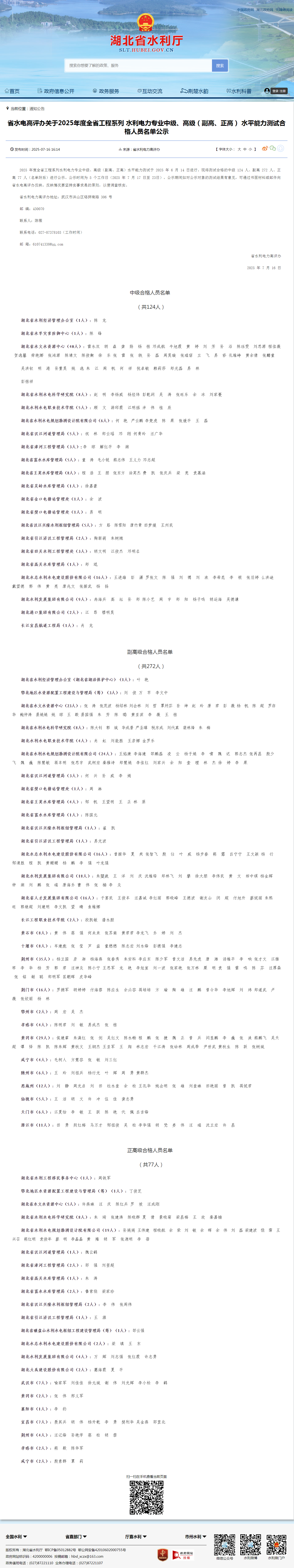省水电高评办关于2025年度全省工程系列水利电力专业中级、高级(副高、正高)水平能力测试合格人员名单公示