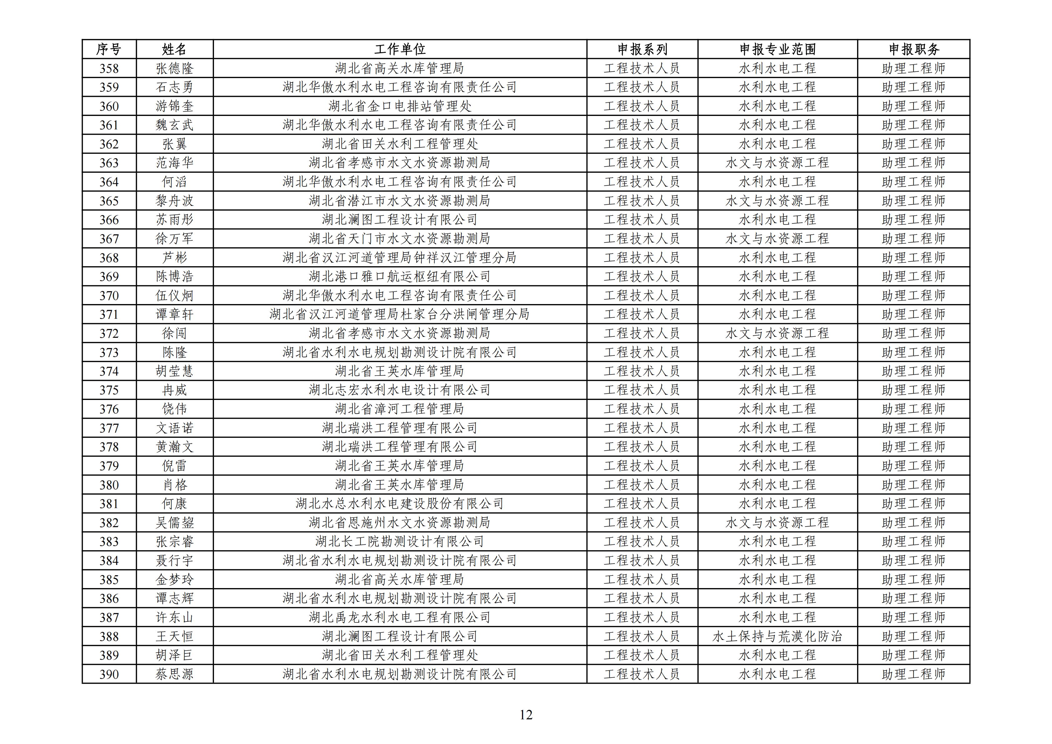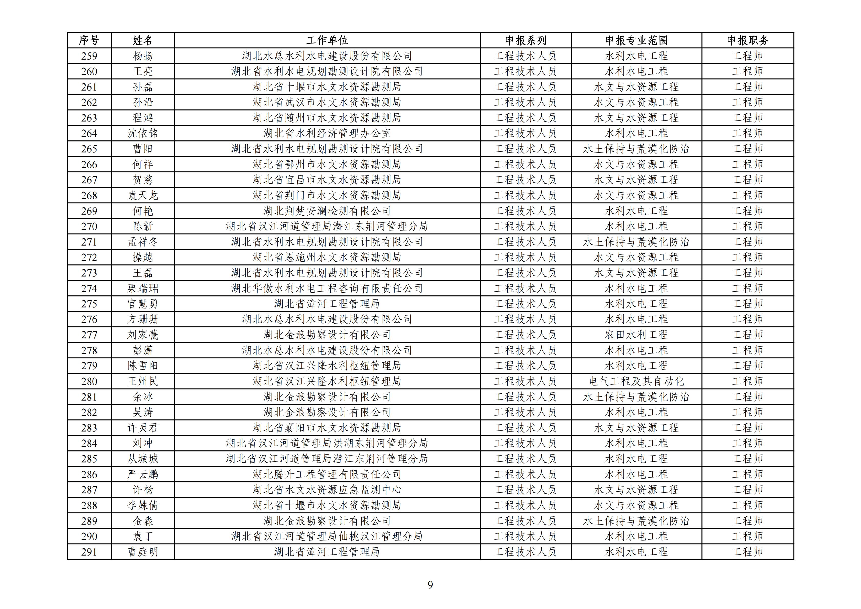 湖北省2025年度工程系列水利电力专业职称参评人员评审前名单公示