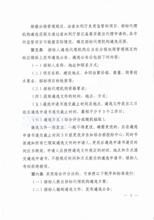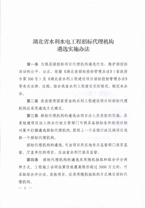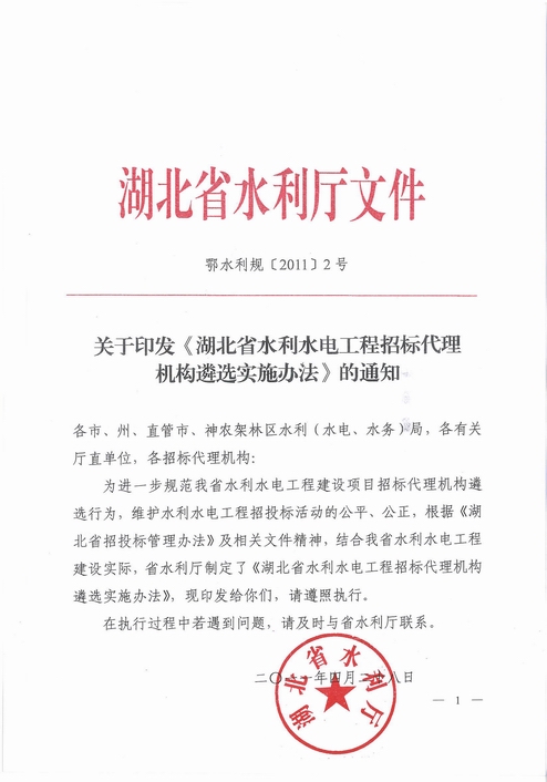 附件1:湖北省水利厅【鄂水利规[2011]2号】关于印发《湖北省水利水电工程招标代理机构遴选实施办法》的通知