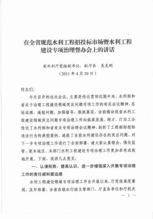 附件3:省水利厅党组副书记、副厅长吴克刚《在全省规范水利工程招投标市场暨水利工程建设专项治理督办会上的讲话》