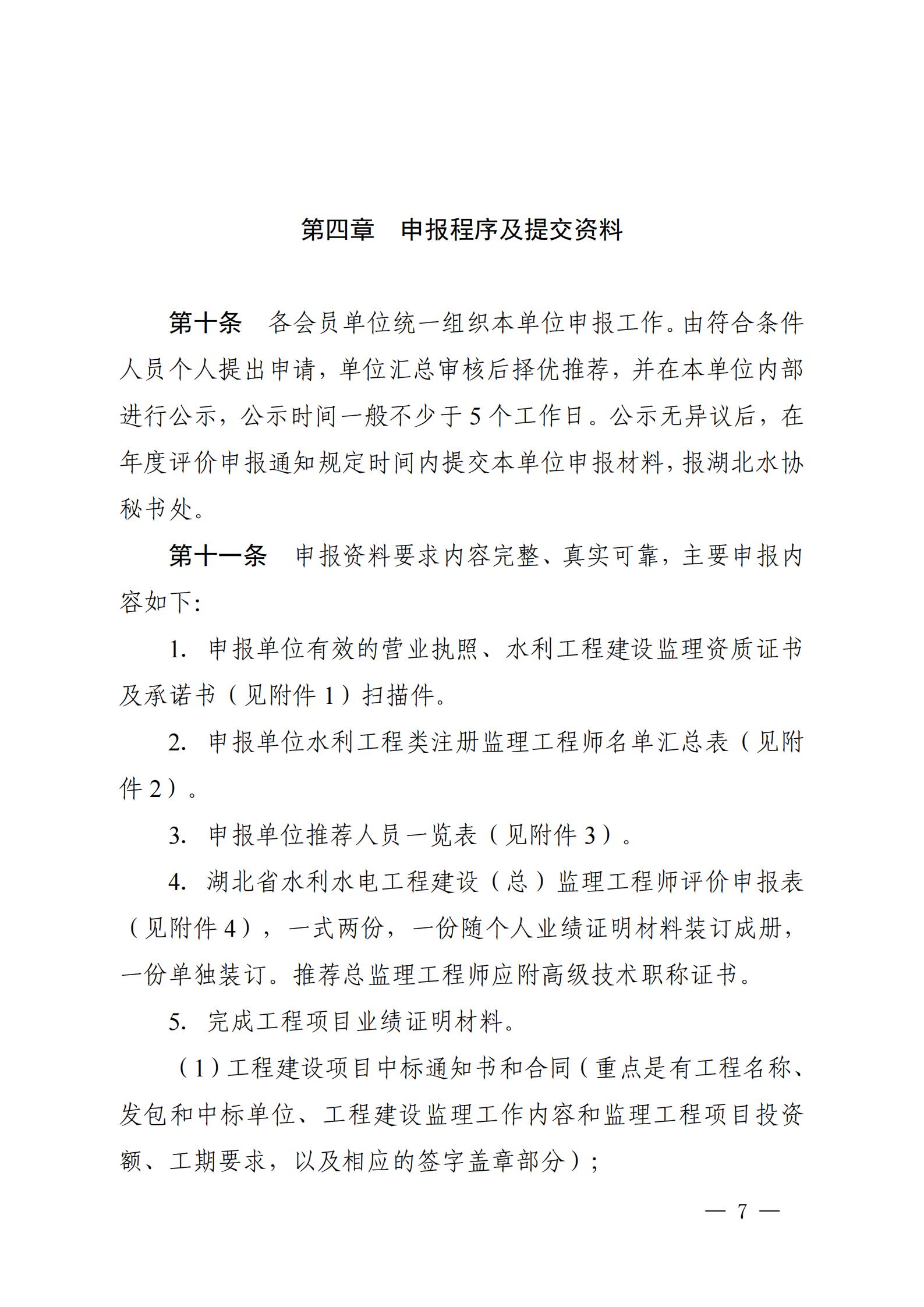 关于印发《湖北省水利水电工程建设(总)监理工程师评价办法》的通知