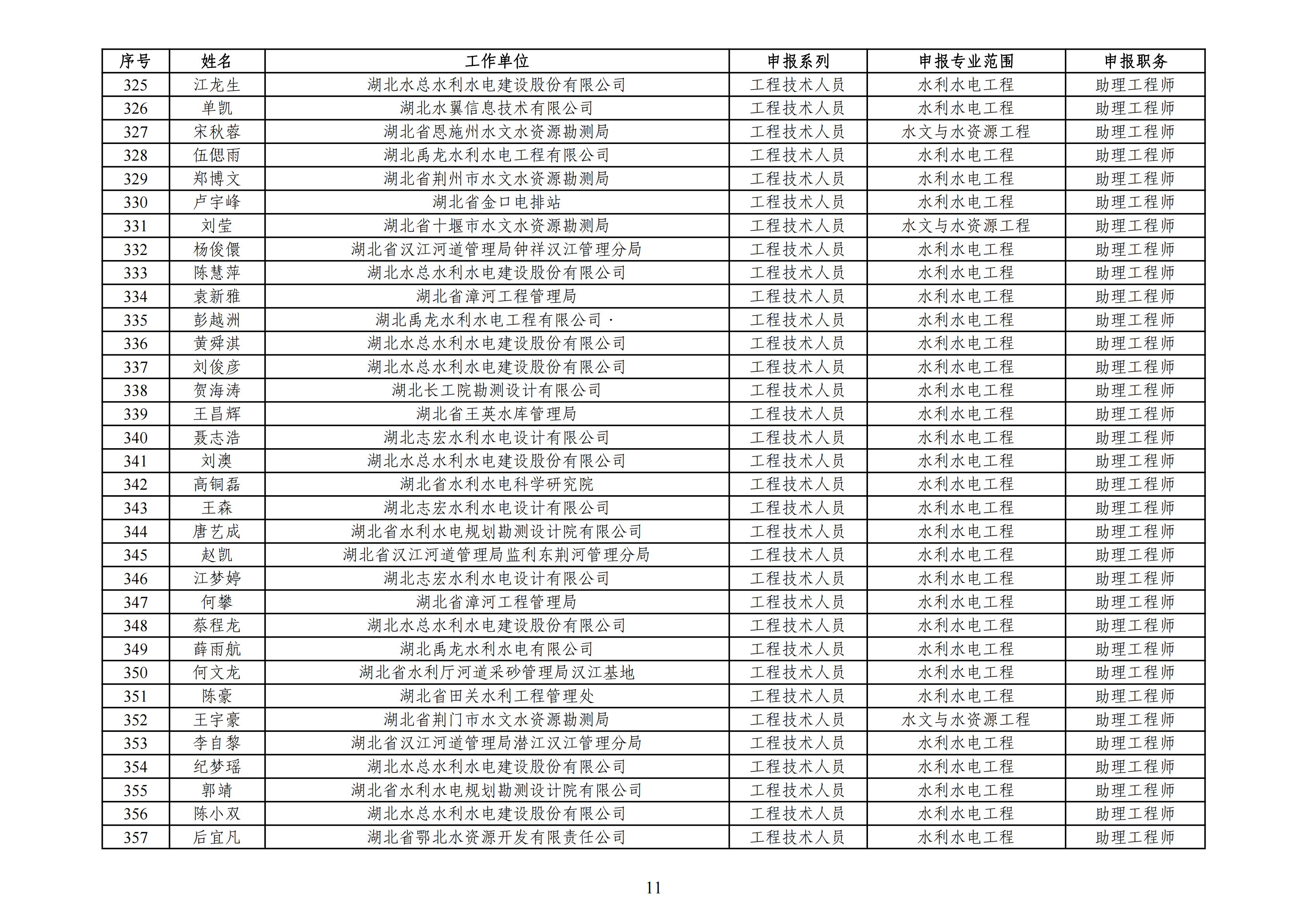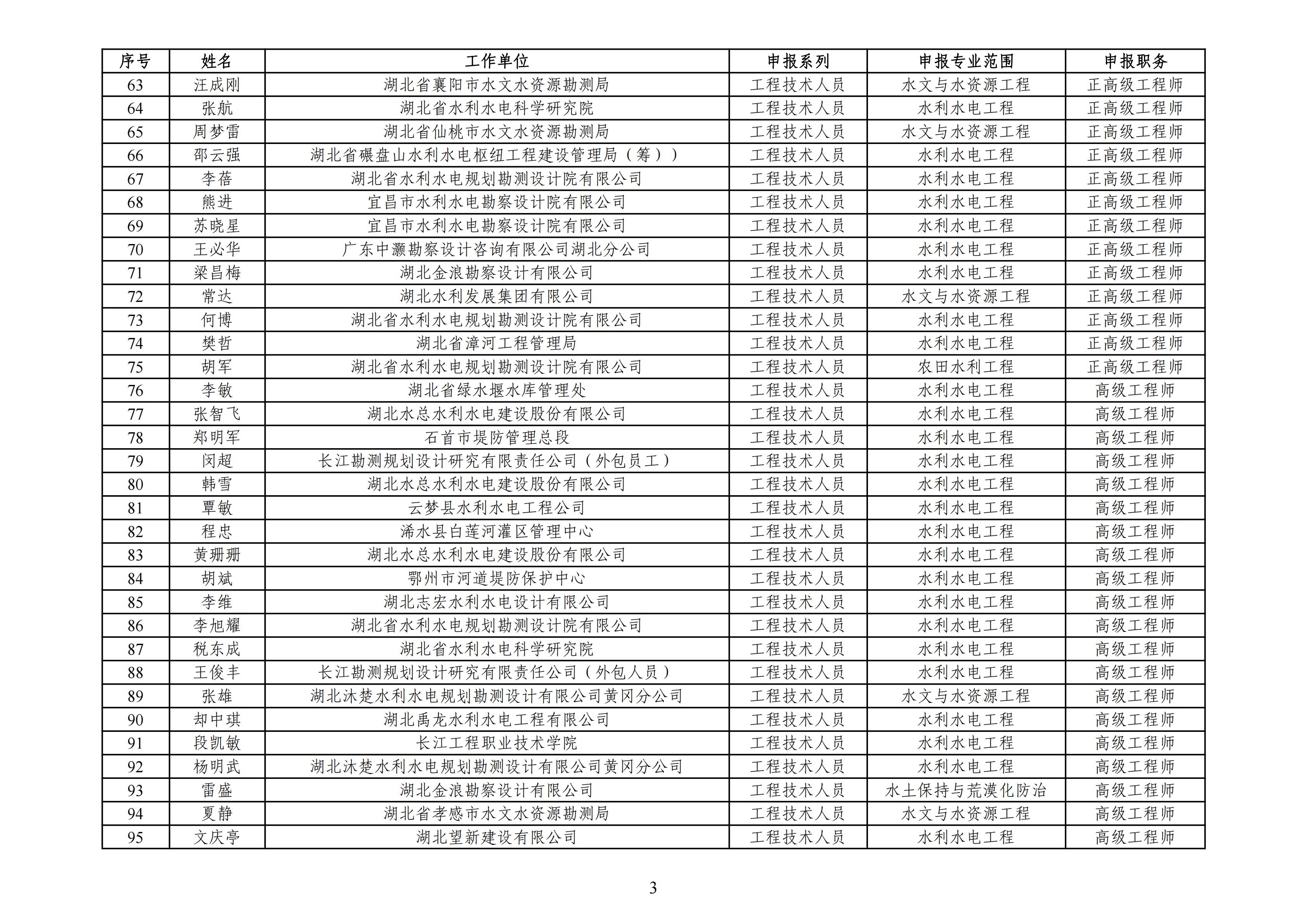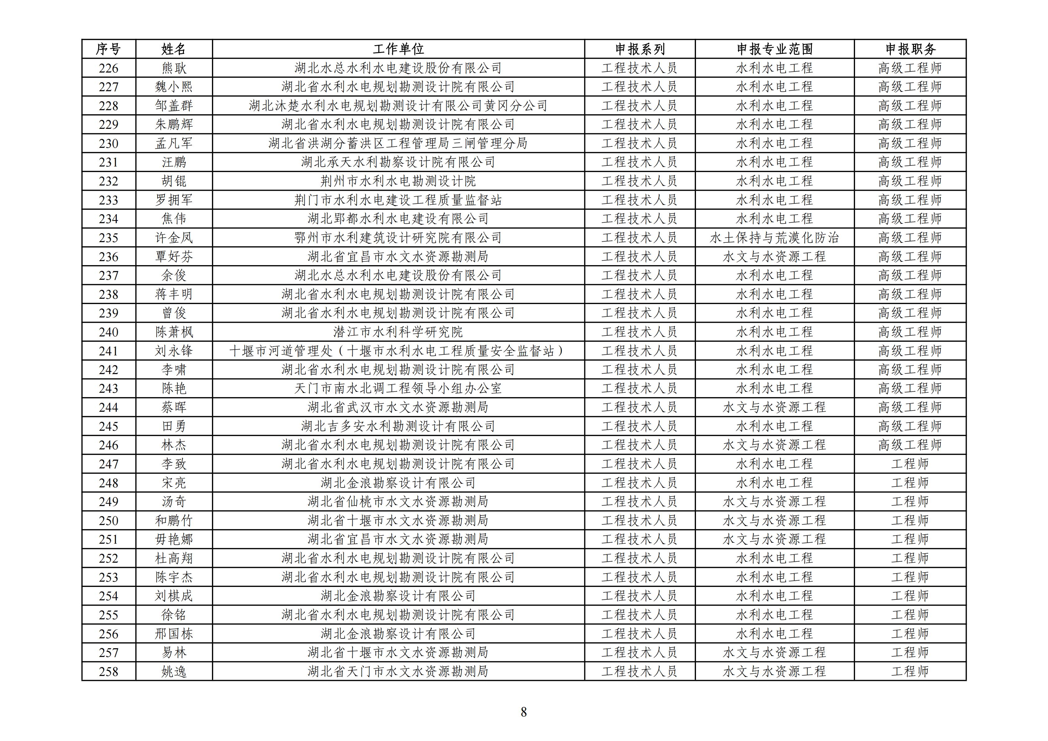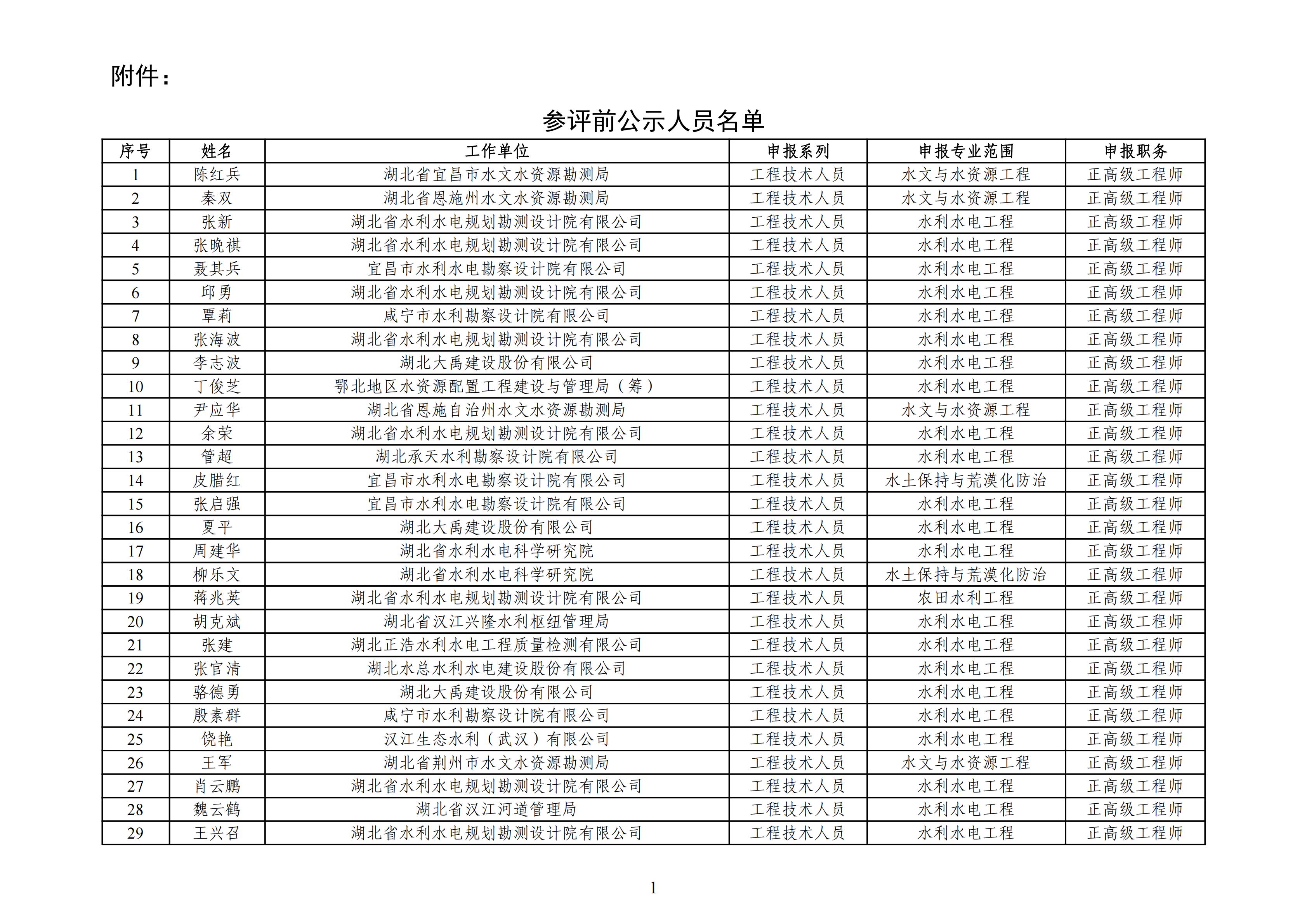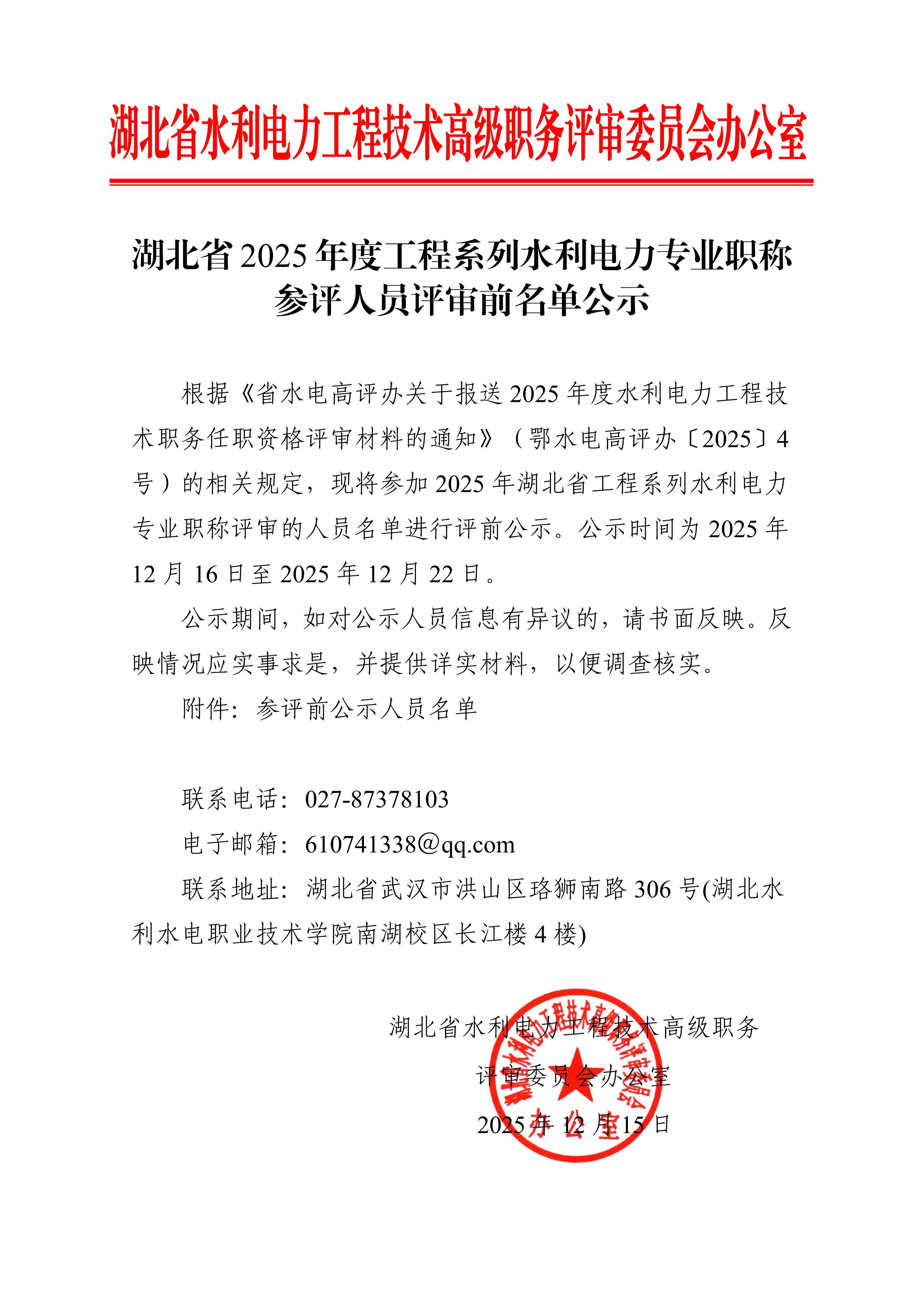 湖北省2025年度工程系列水利电力专业职称参评人员评审前名单公示