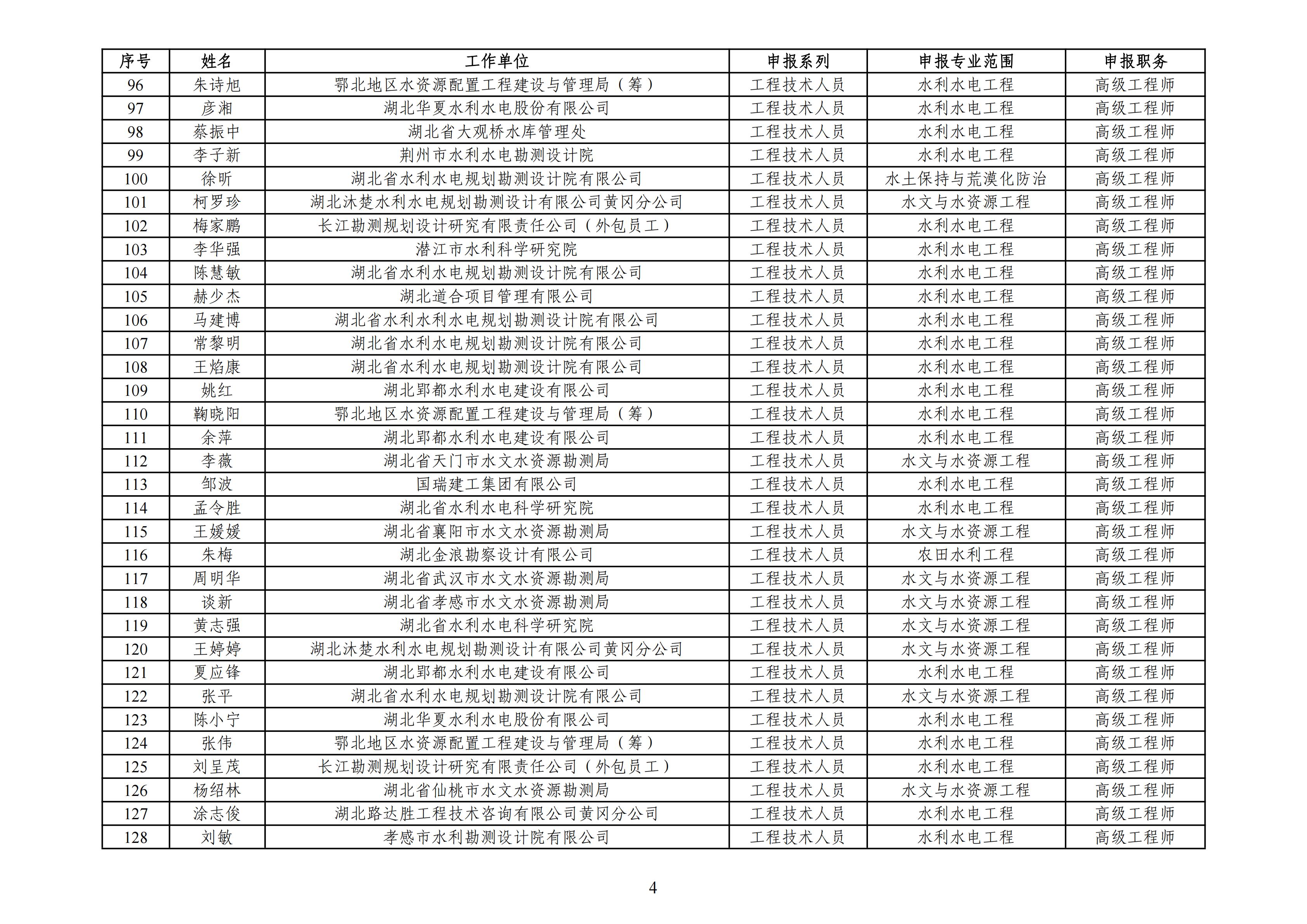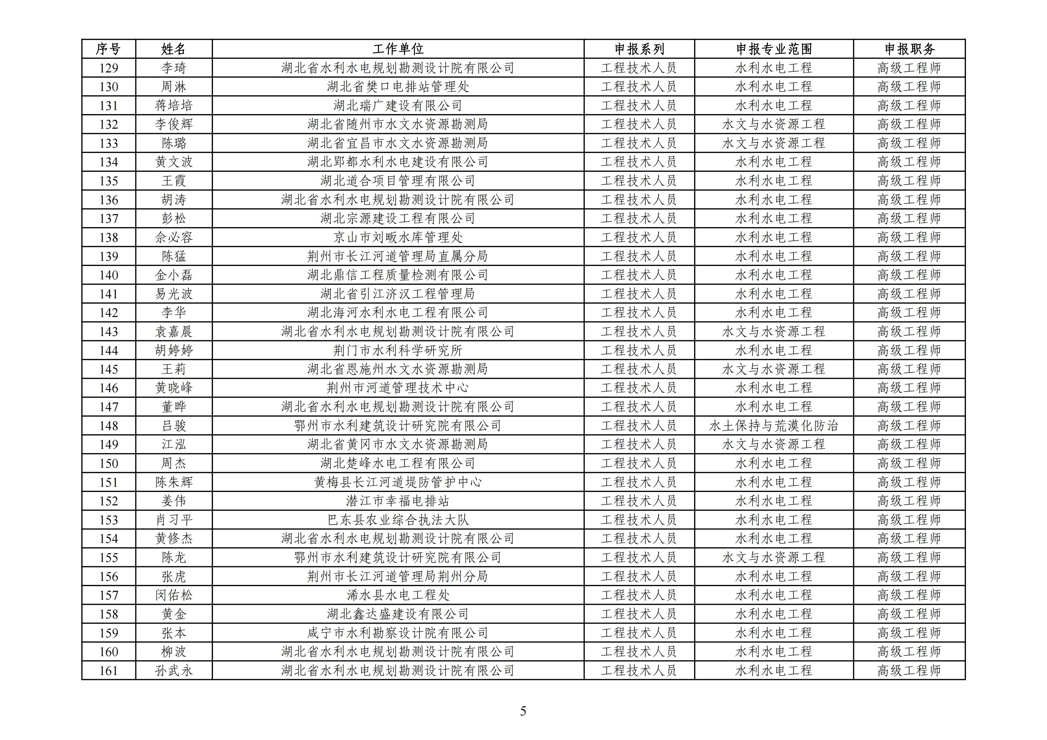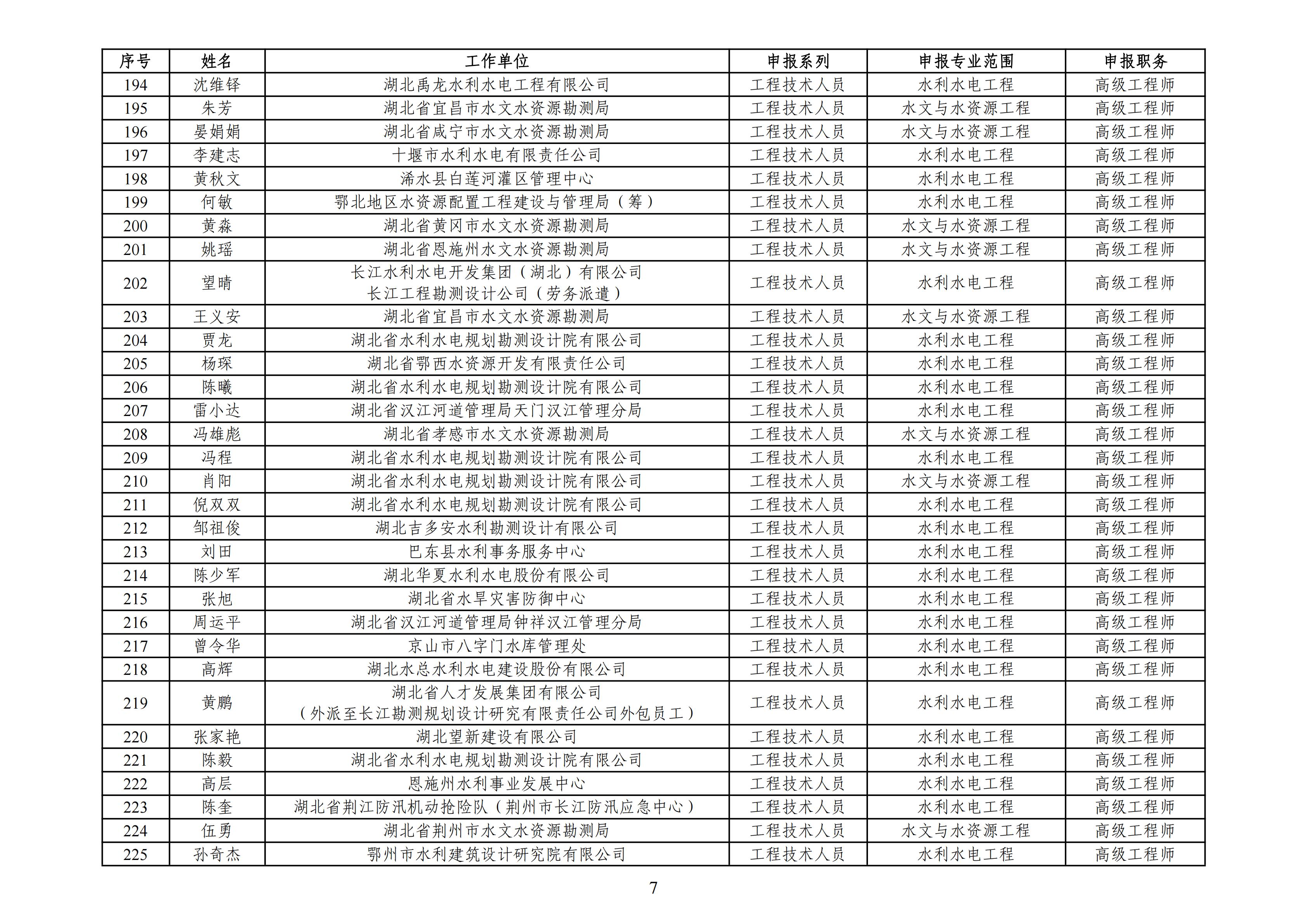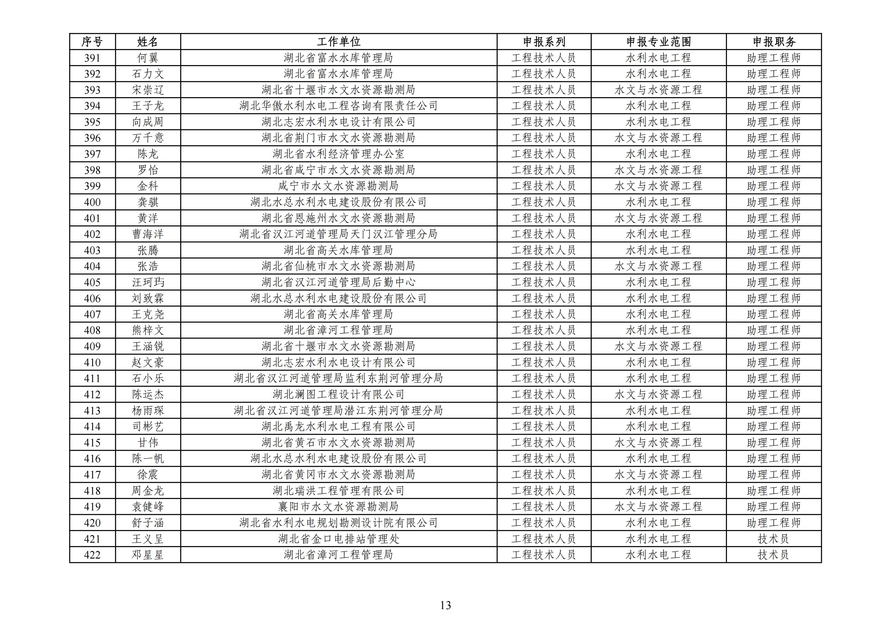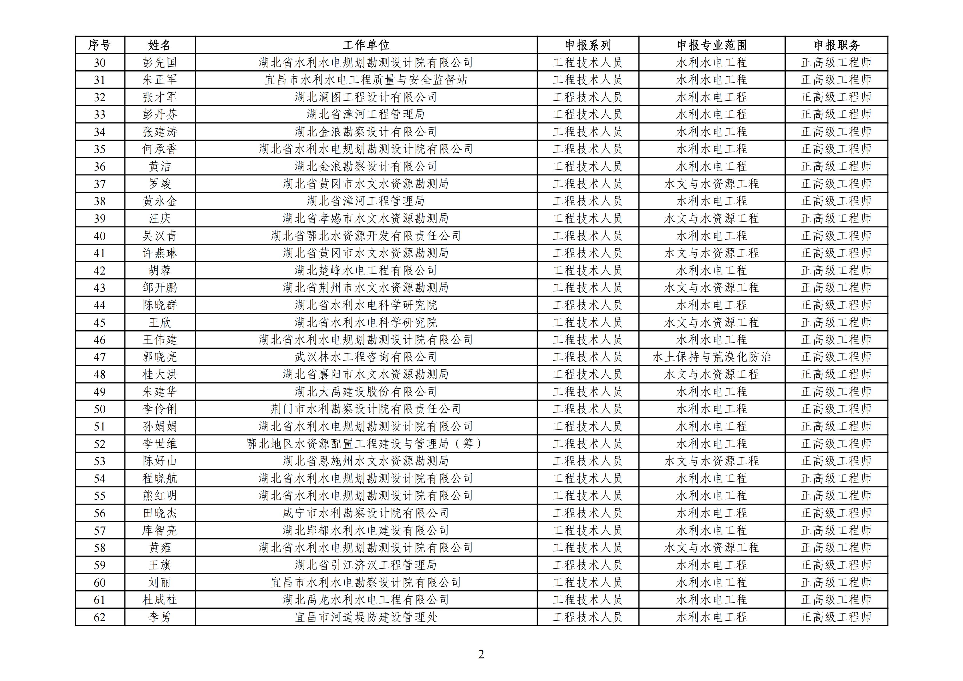 湖北省2025年度工程系列水利电力专业职称参评人员评审前名单公示