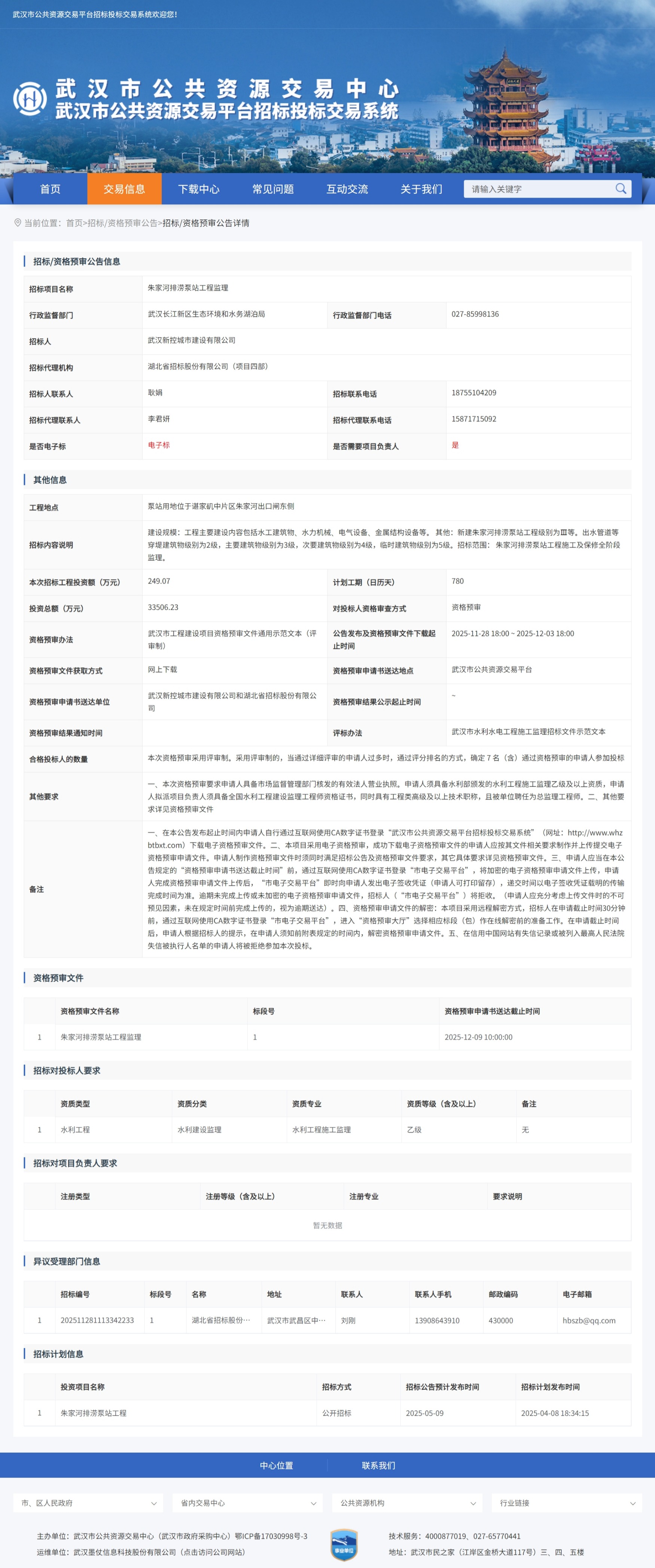 朱家河排涝泵站工程监理资格预审公告